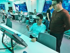 首次接受培訓(xùn)及體驗(yàn)的是來自八個學(xué)院涉及虛擬仿真教學(xué)的專業(yè)教師代表、各院實(shí)踐教學(xué)科科長及實(shí)訓(xùn)中心的全體人員,約30位老師。