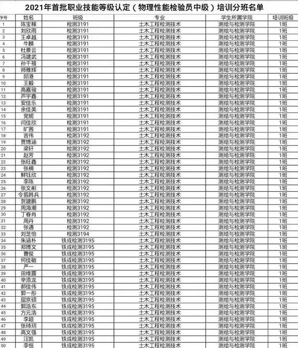 2021年首批職業(yè)技能等級認定(物理性能檢驗員)培訓分班名單